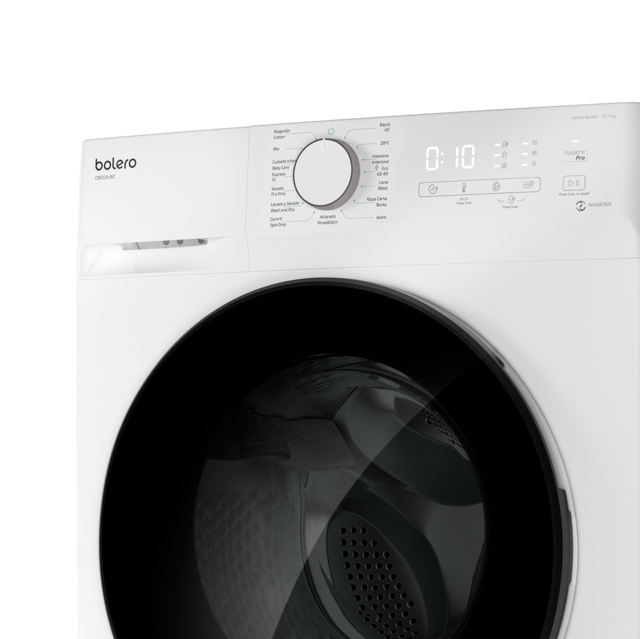 Bolero Wash&Dry 10700 Inverter. Lavadora Secadora 10 Kg + 7 Kg de Secado Carga Frontal 1500 rpm, 1900 W, Motor Inverter Plus, 15 Programas, HygienePro, DelayStart